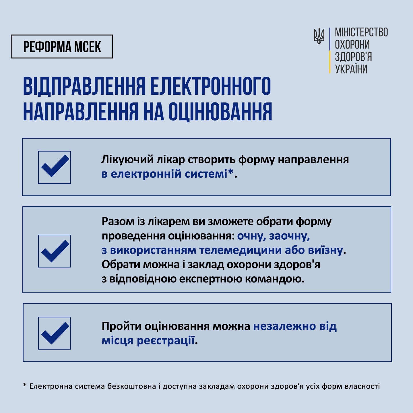 Направлення. Лікар вносить ваші дані до електронної системи та допомагає обрати заклад для оцінювання експертною командою, формує електронне направлення.