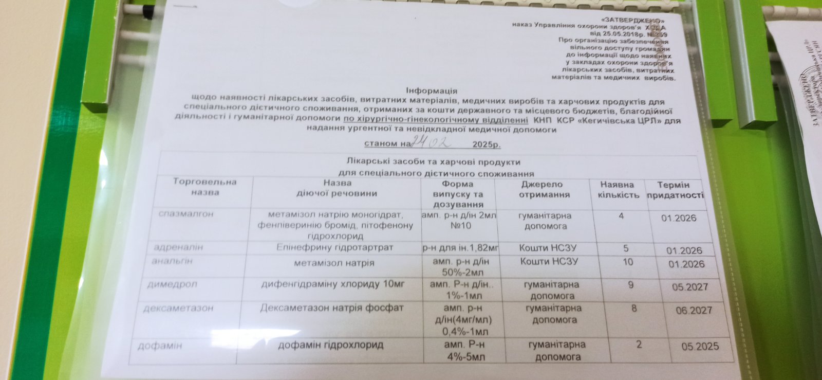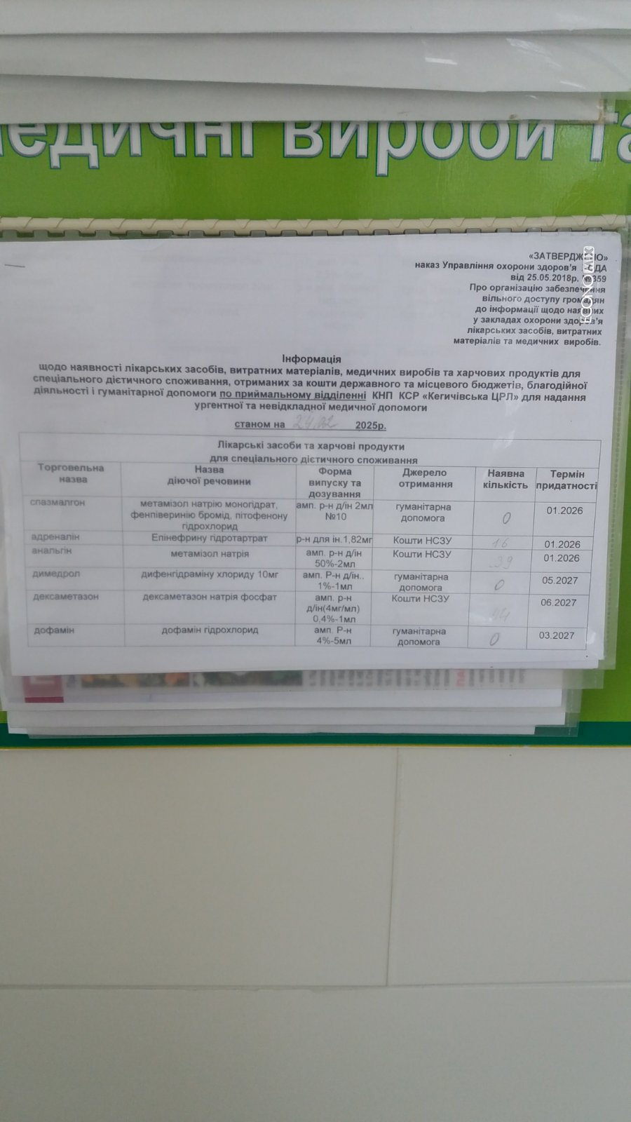 Інформація щодо наявності ліків станом на 24.02.2025